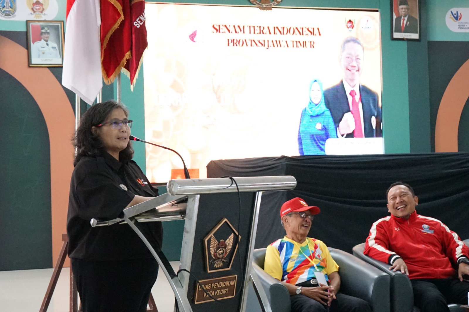 Turut hadir, Ketua Senam Tera Jawa Timur Hariyanto, Ketua KORMI Kota Kediri Abdian Asgy, Perwakilan dari Dinas Pendidikan, dan tamu undangan lainnya.(Adv/kom)